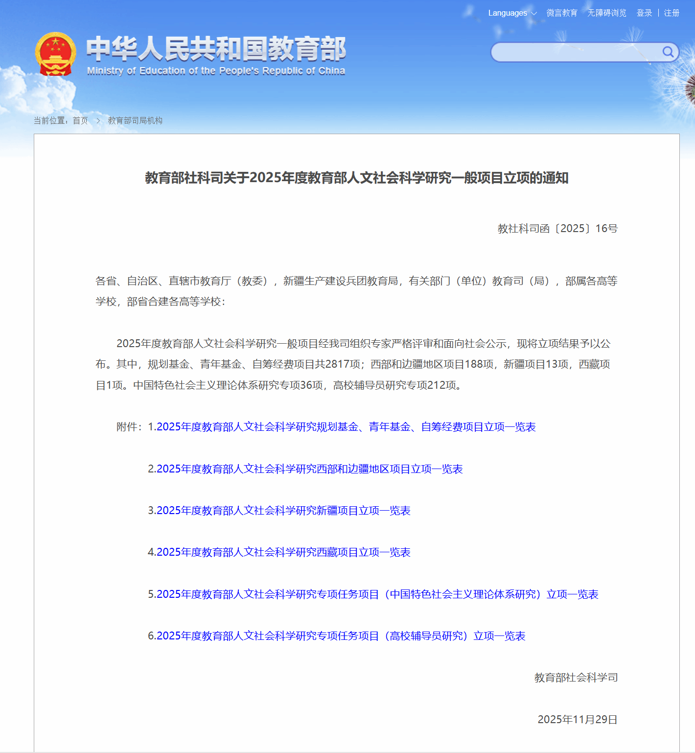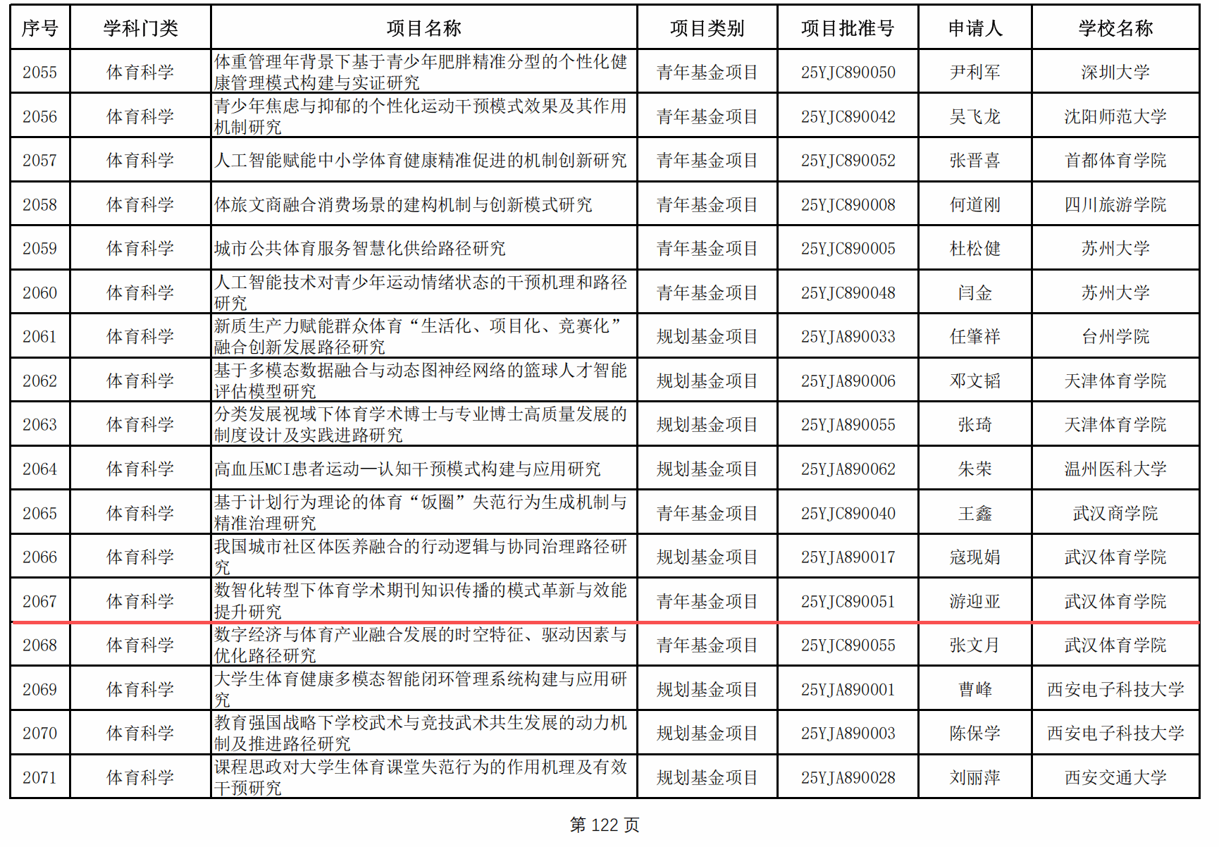 近日,教育部社科司公布2025年度人文社会科学研究一般项目立项名单。中心成员、期刊社副编审游迎亚申报的“数智化转型下体育学术期刊知识传播的模式革新与效能提升研究”课题,获得青年基金项目立项(项目批准号:25YJC890051)。